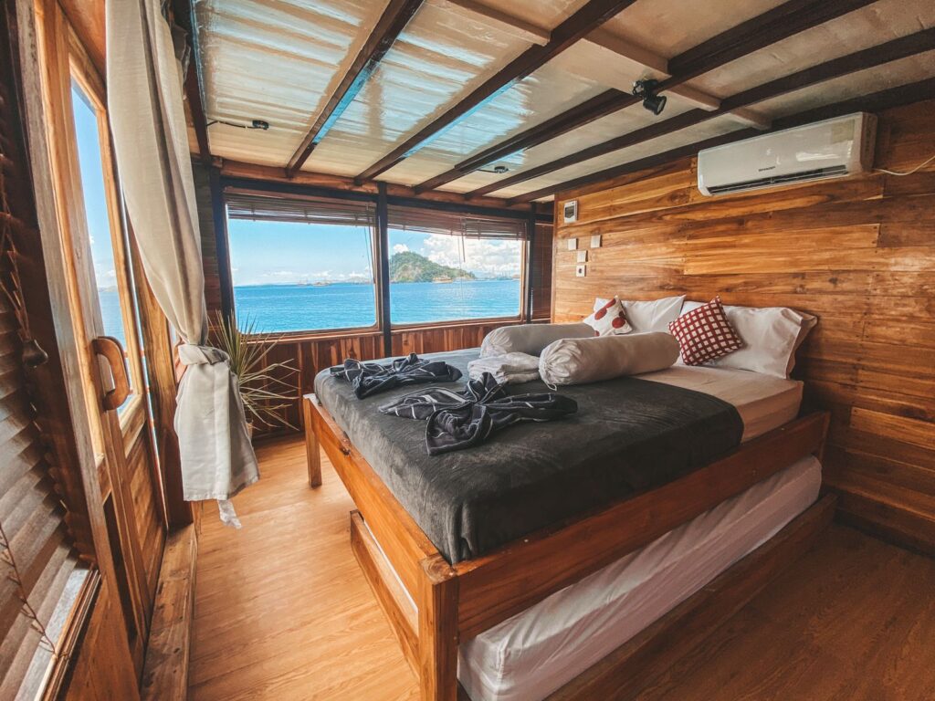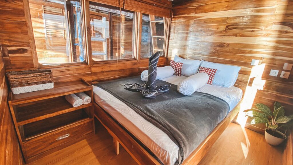 Days aboard Papiton Duwa unfold at an easy, adventurous pace. Wake to sunrise over Komodo’s islands from your private sea-view cabin, enjoy freshly prepared breakfasts, and set off for snorkeling, diving, or trekking with your guide. Afternoons invite relaxation—stretch out on the spacious sundeck, swing on the net bowsprit, or share stories over coffee and tea. Evenings bring gourmet dinners and dazzling starry skies. Whether you book a private charter or join a shared trip, every moment celebrates the freedom and camaraderie of a true Komodo liveaboard journey.