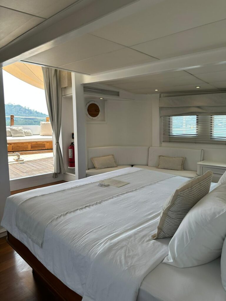 The boat itself is a beautiful, clean white, and very elegant. I noticed it was spacious, airy, and gave off a quiet luxury vibe that felt a bit European. The air-conditioning was cold and reliable, and there was Wi-Fi, not perfect 24/7, but enough to check the news or post to Instagram.