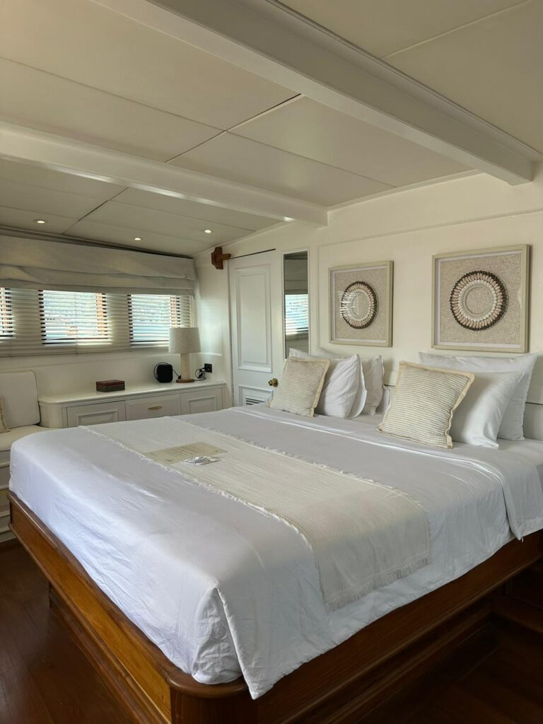 I always check the bathroom first because it tells you everything, and this one passed immediately. It was properly clean, with good water pressure and hot water, even in the lower deck cabins. Every facility worked exactly as it should. You can also explore the Mutiara Laut yacht charter to see the details for yourself.